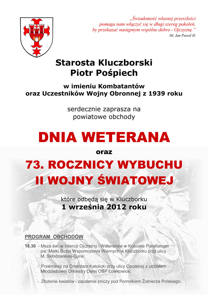 Powiatowe obchody Dnia Weterana i rocznicy wybuchu II Wojny Światowej