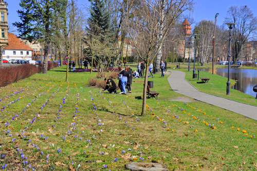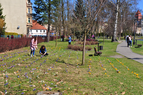 Różowa Aleja w Kluczborku - dywan z krokusów