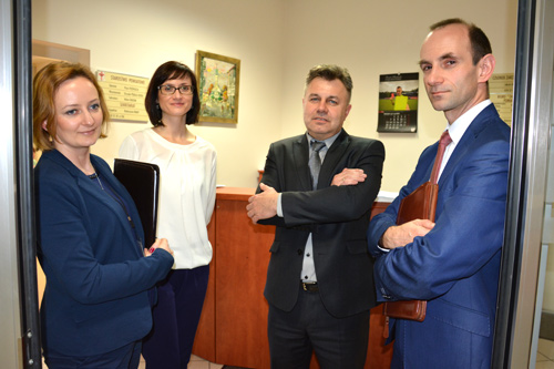 Adam Radom - Sekretarz, Pełnomocnik ds. Systemu Zarządzania Jakością, Anna Turczyńska - Koordynator ds. Systemu Zarządzania Jakością (w środku) oraz auditorzy.
