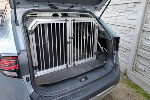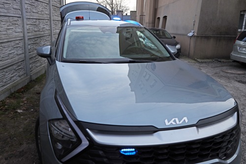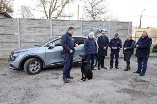 KIA jest autem specjalistycznym, będzie służyć do transportu policyjnych psów. W bagażniku jest klatka dla dwóch czworonogów.