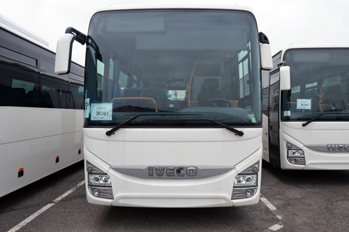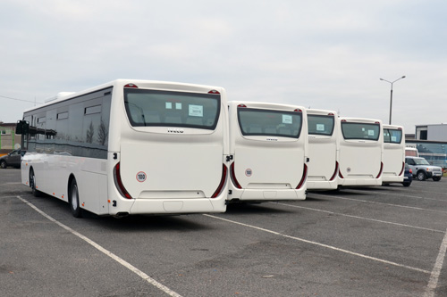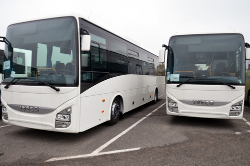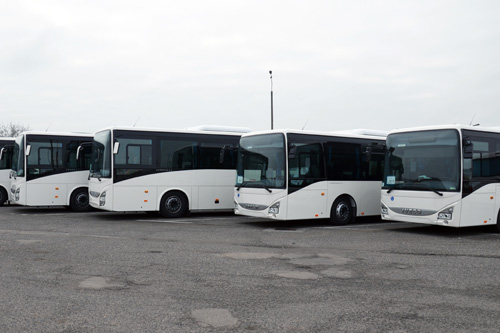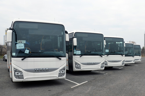 - Wszystkie pojazdy to autobusy marki Iveco,