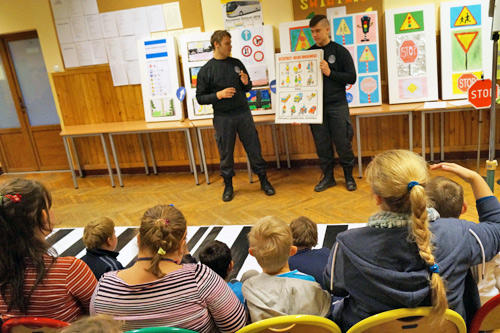 z zakresu przepisów ruchu drogowego, prezentowali znaki drogowe,