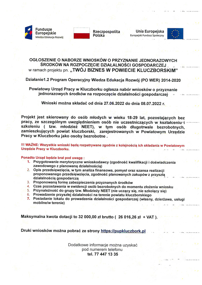 Powiatowy Urząd Pracy w Kluczborku ogłasza nabór