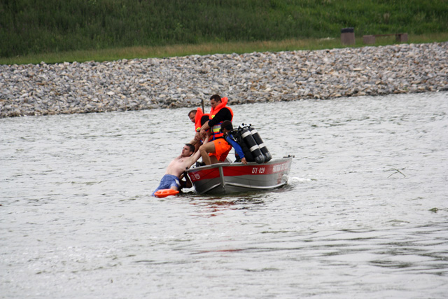 których łódź przewróciła się na środku zbiornika. W akcji wykorzystywany