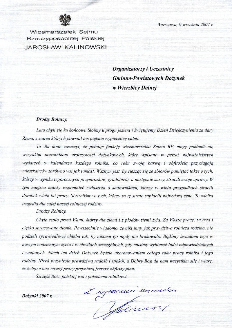 Na scenie, aż do wieczora odbywały się występy artystyczne dzieci i młodzieży z ośrodków kultury powiatu kluczborskiego. Publiczność największymi brawami nagrodziła występ Zespołu "BURAKY" złożonego z samorządowców. Sporym zainteresowaniem cieszył się także pokaz ratownictwa drogowego i medycznego, zorganizowany przez Komendę Powiatową Państwowej Straży Pożarnej w Kluczborku. Na koniec dożynek zagrała gwiazda - Zespół HAPPY END, wieczorem do tańca przygrywała grupa EX-ZARYS. Całość uroczystości poprowadziła Halina Nabrdalik z Radia OPOLE. Organizatorami imprezy byli: Starostwo Powiatowe w Kluczborku, Wołczyński Ośrodek Kultury, Kluczborsko-Oleska Lokalna Organizacja Turystyczna i Rada Sołecka Wierzbicy Dolnej. Patronatem medialnym imprezę objął tygodnik "Kulisy Powiatu". Dożynki powiatowe, to wydarzenie, które odbyło się po raz pierwszy. Rolnicy w tym roku zakończenie żniw mogli świętować na dożynkach organizowanych przez poszczególne gminy, jak i na tej dodatkowej imprezie, która miejmy nadzieję na stałe wpisze się do kalendarza.