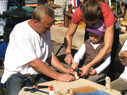 Najmłodsi oblegali stoisko rzeźbiarza Dariusza Pawłowskiego, tym