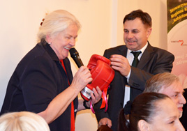 mógł być na spotkaniu osobiście) rękawice bokserskie jako symboliczne