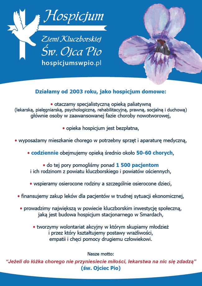 Hospicjum Ziemi Kluczborskiej św. Ojca Pio informuje...