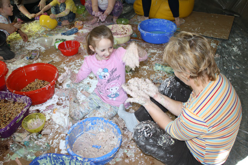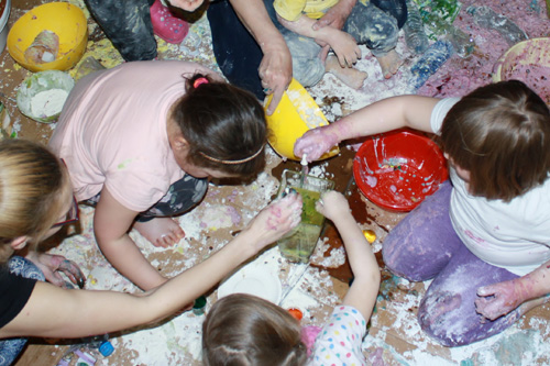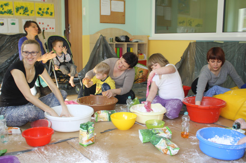 wraz z opiekunami miały okazję sypać, mieszać, ugniatać, ciapać,