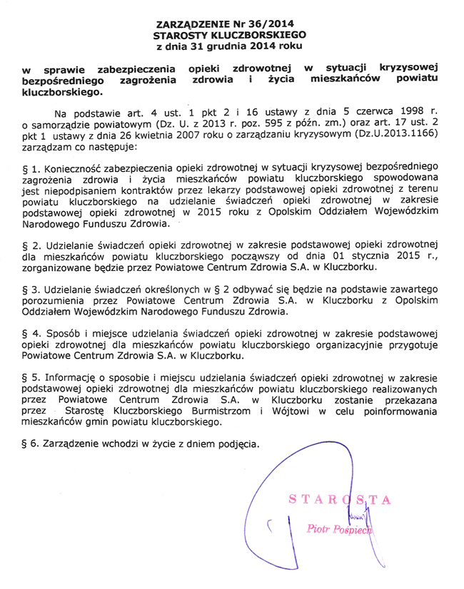 Starosty Kluczborskiego z dn. 31.12.2014 r. w sprawie