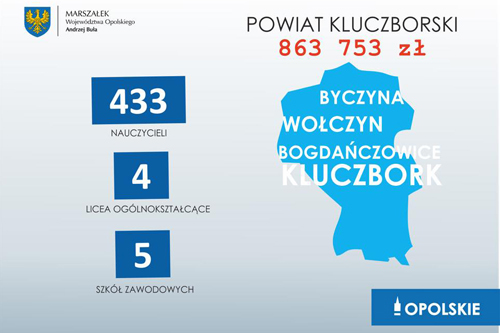 Monitory interaktywne, wizualizery, kamery oraz zestawy słuchawkowe dla szkół oraz laptopy z oprogramowaniem i wsparcie w postaci szkoleń otrzymają szkoły ponadpodstawowe i nauczyciele z powiatu kluczborskiego w ramach projektu pn. "Op@lskie dla liceów - zdalne nauczanie zbliża!" realizowanego przez Urząd Marszałkowski Województwa Opolskiego.