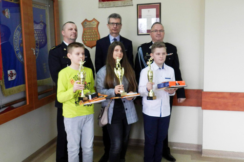 Poznaliśmy laureatów eliminacji powiatowych Ogólnopolskiego Turnieju Wiedzy Pożarniczej "Młodzież zapobiega pożarom", które odbyły się w Komendzie Powiatowej Państwowej Straży Pożarnej w Kluczborku. Zdobywcy pierwszego i drugiego miejsca w poszczególnych kategoriach będą nas reprezentować na eliminacjach wojewódzkich, które odbędą się w Brzegu. Nagrody laureatom wręczyli Wicestarosta Kluczborski Rafał Neugebauer, Komendant Powiatowy Państwowej Straży Pozarnej w Kluczborku kpt. Mariusz Stępień oraz Wiceprezes Zarządu Powiatowego Związku Ochotniczych Straży Pożarnych RP w Kluczborku Norbert Waliczek.