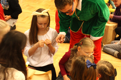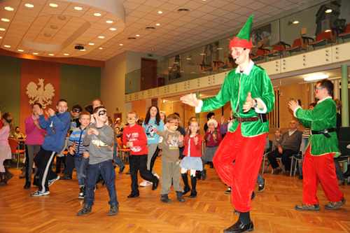 paczkę, a w oczekiwaniu na jego wizytę zaproszone na imprezę Elfy i pracownicy