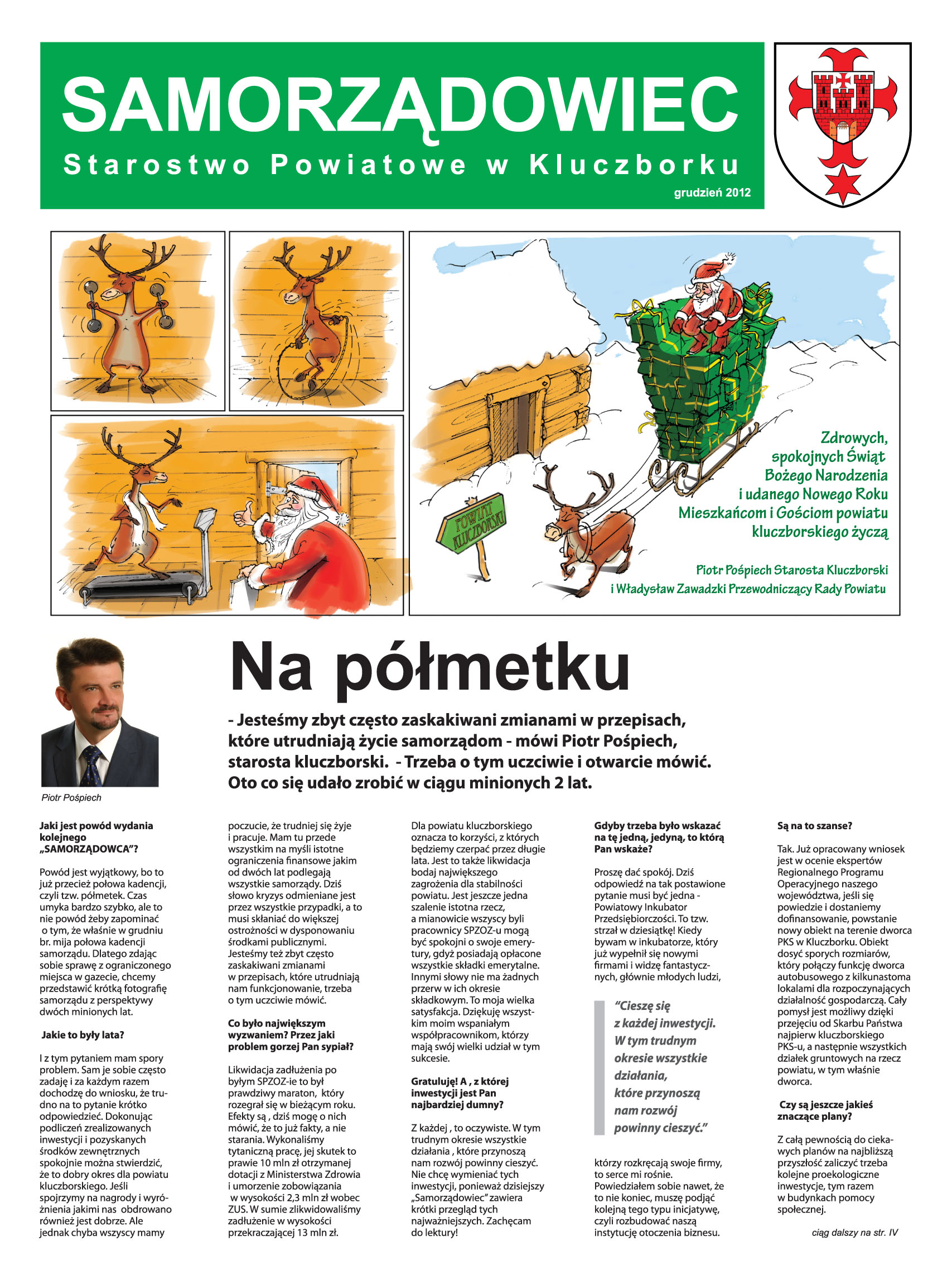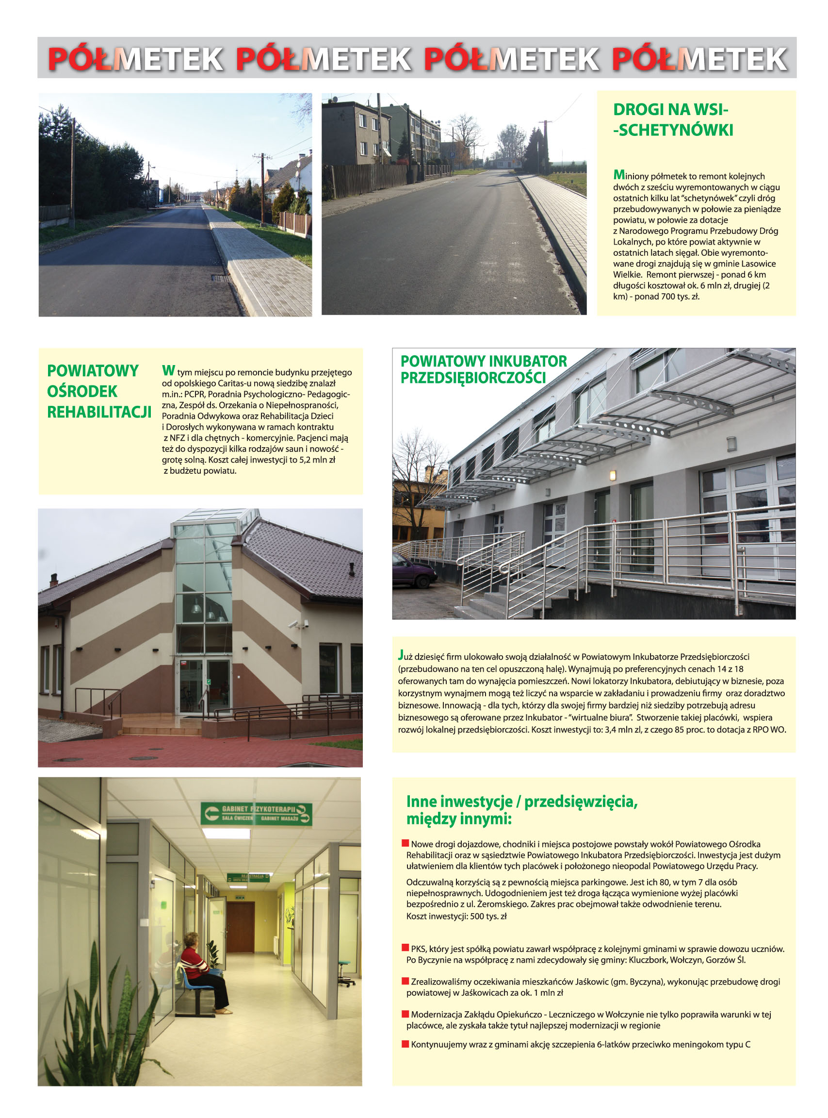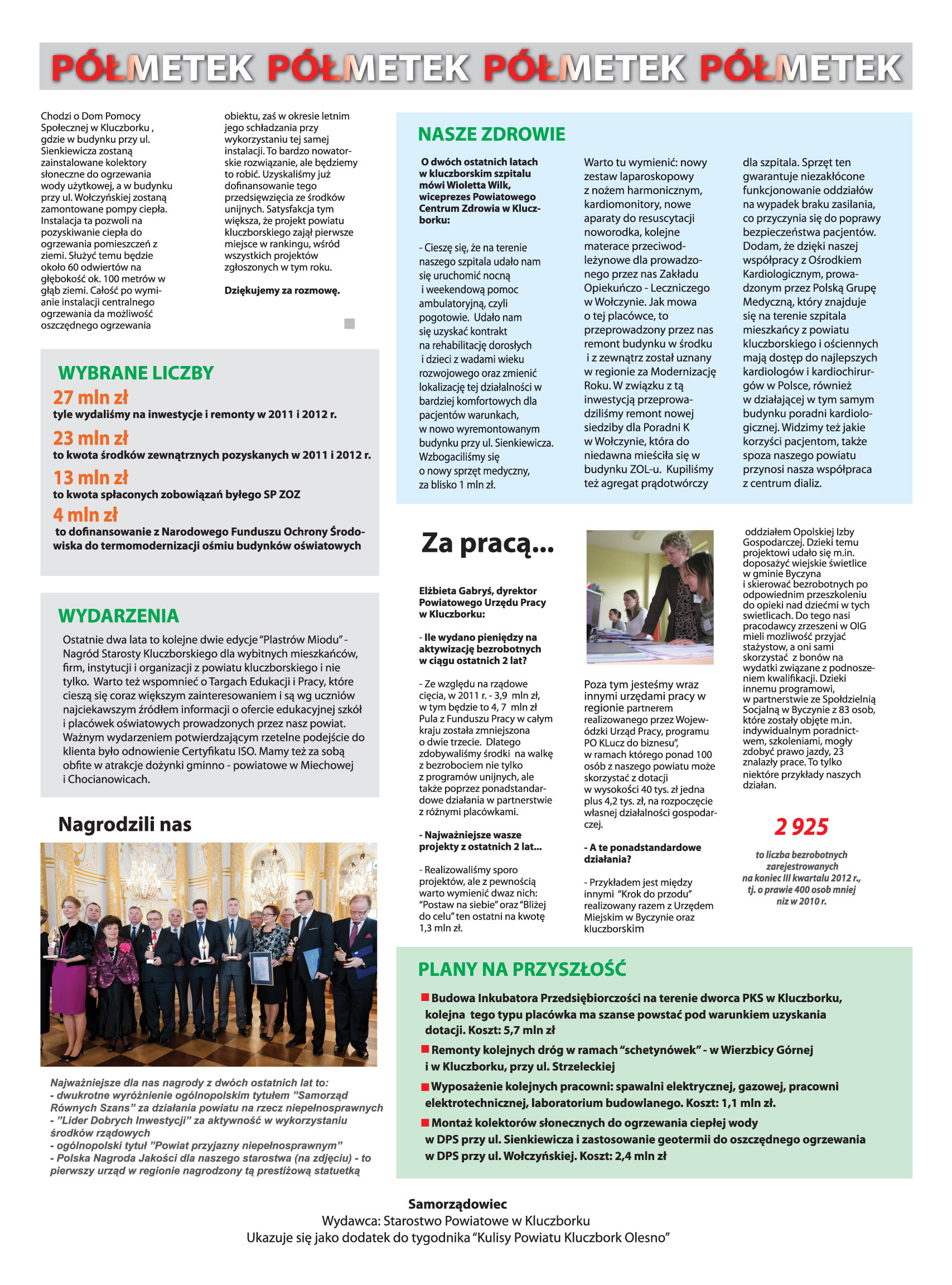 "Kulisy Powiatu" - półmetek kadencji Krótką fotografię powiatu - czyli to, co udało się zrobić w ciągu ostatnich dwóch lat obecnej kadencji - prezentują "Kulisy Powiatu" z 13 grudnia 2012 r. we wkładce "Samorządowiec". Zobacz jakie najważniejsze inwestycje, remonty, przedsięwzięcia, projekty mamy za sobą.