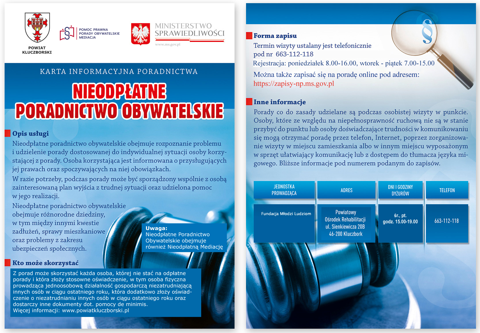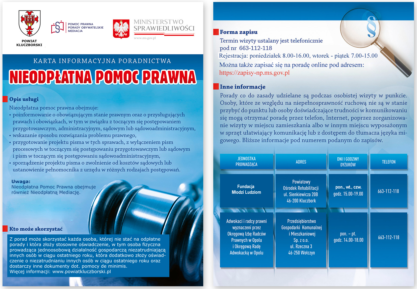 I. Kluczbork - Punkt Nieodpłatnej Pomocy Prawnej, Poradnictwa