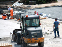 drogi dojazdowe, chodniki i miejsca postojowe powstają między wokół