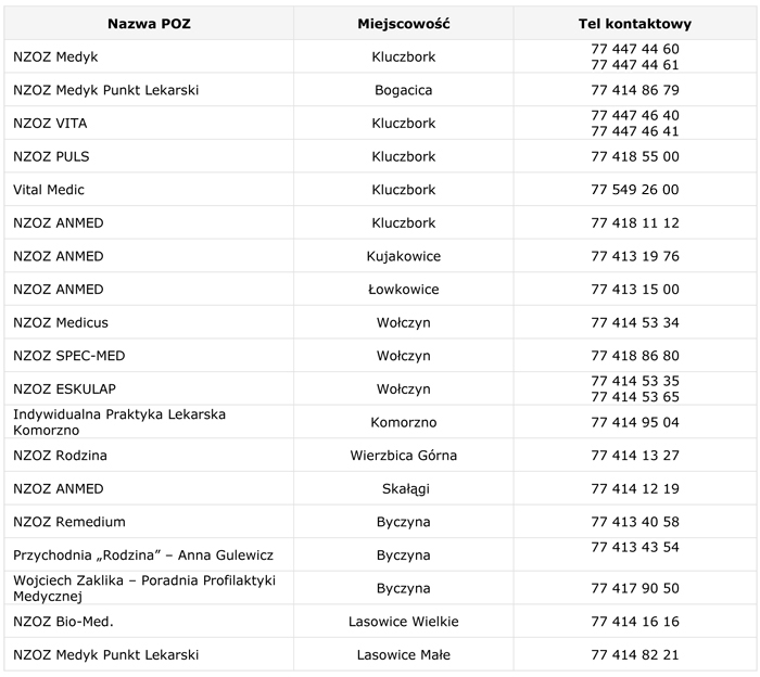 W związku z zaistniałą sytuacją epidemiologiczną przed wizytą w poradni POZ prosimy w pierwszej kolejności o kontakt telefoniczny z rejestracją Przychodni, celem umówienia konieczności osobistej wizyty lub udzielenia porady telefonicznej.