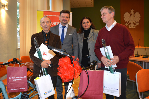 wyjeździli najwięcej kilometrów otrzymali w nagrodę od starosty rowery.