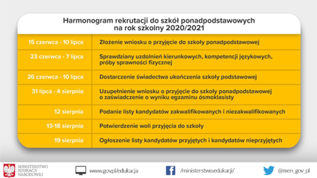 01.06.2020 Internetowy nabór do szkół ponadpodstawowych na rok szkolny 2020/2021