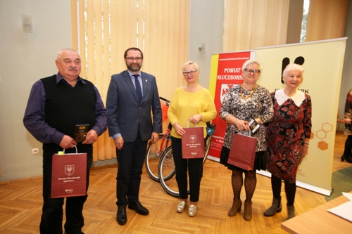 Najlepsi rowerzyści otrzymali upominki przygotowane przez: Starostę