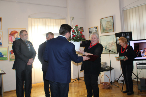 Na wernisażu były podziękowania, życzenia, kwiaty, upominki. Były też