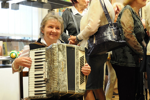 Podczas niedzielnego wernisażu pięknie zagrała na akordeonie Anna