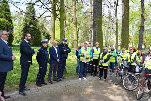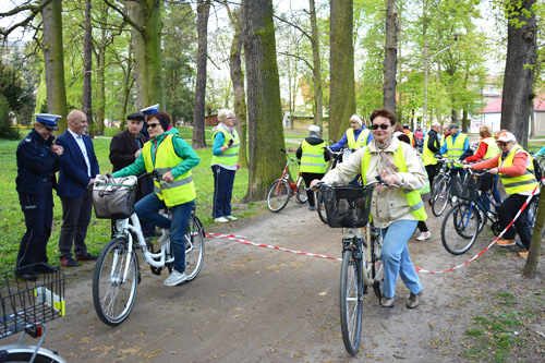 Przed wyruszeniem w pierwszą trasę nasi seniorzy otrzymali rady i wskazówki od policjantów, którzy mówili o bezpieczeństwie cyklistów podczas rowerowych wypraw, ale też odpowiadali na nurtujące ich pytania.