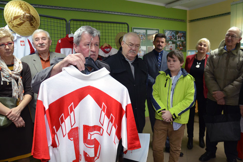 stroje, w których kibicował naszym można oglądać w kluczborskiej