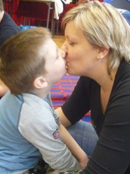 Zespół Wczesnego Wspomagania Rozwoju Dziecka i jego rodziny istnieje przy Specjalnym Ośrodku Szkolno-Wychowawczym w Kluczborku od roku szkolnego 2005/06. Obejmuje opieką dzieci z nieprawidłowościami rozwojowymi od czasu wykrycia niepełnosprawności do podjęcia nauki w szkole. Praca terapeutyczna dotyczy zarówno dzieci, jak i ich rodziców (opiekunów), którzy uczą się od terapeutów jakimi metodami pracować z pociechami, otrzymują wskazówki do kontynuacji ćwiczeń w domu. Mogą także liczyć na wsparcie w trudnych chwilach związanych z wychowaniem dziecka niepełnosprawnego. W dniu 27 kwietnia 2010 roku zespół terapeutów wczesnego wspomagania z inicjatywy i pod przewodnictwem mgr Elżbiety Kansy, specjalistki w zakresie wczesnego wspomagania zorganizował spotkanie dla dzieci i rodziców poświęcone Metodzie Ruchu Rozwijającego Weroniki Sherborne. Ćwiczenia te mają na celu rozwijanie sfery emocjonalno-społecznej, świadomości samego siebie i innych osób, uczą też czuć się bezpiecznie w poznanym otoczeniu. Po krótkiej instrukcji pani Kansy zaproponowała szereg ćwiczeń, w których brały udział dzieci, rodzice, terapeuci oraz inni nauczyciele, którzy chcieli zapoznać się z tą metodą pracy. Cała grupa bardzo szybko nawiązała dobry kontakt; dzieci – nawet malutkie – chętnie bawiły się z innymi. Zabawom towarzyszyło radosne ożywienie i głośny śmiech małych i dużych. Po zakończeniu ćwiczeń pojawiła się kolejna atrakcja: na prośbę p. Jolanty Staniszewskiej - kynoterapeutki, zaprzyjaźnieni właściciele hoteliku dla psów przyprowadzili specjalnie przeszkolone psy, które dzieci mogły dokładnie obejrzeć, dotknąć, nakarmić a nawet… powąchać. Rodzice w tym czasie mieli chwilę na odpoczynek i rozmowy we własnym gronie. Z relacji rodziców wynika,