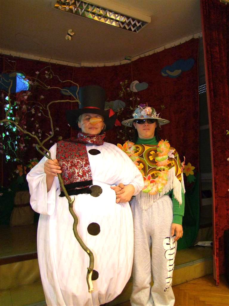 bałwanek chłodno pożegnał się z uczniami SOSW i dość niechętnie