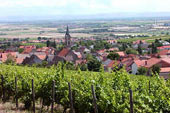 równina Renu ze wstęgą winnic wzdłuż pasma pagórków „Haardt”.